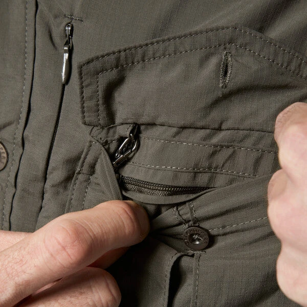 Lett ripstop materiale som er vannavvisende og har en kjølende effekt i varmt klima. Perfekt på Safari og andre tropereiser. Kommer med en RFID-lomme for ekstra sikkerhet på reise.