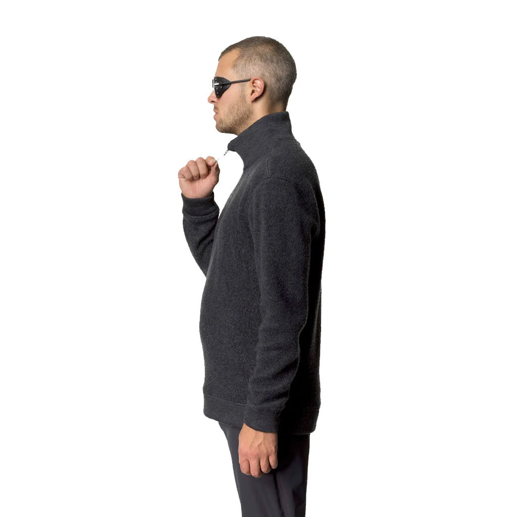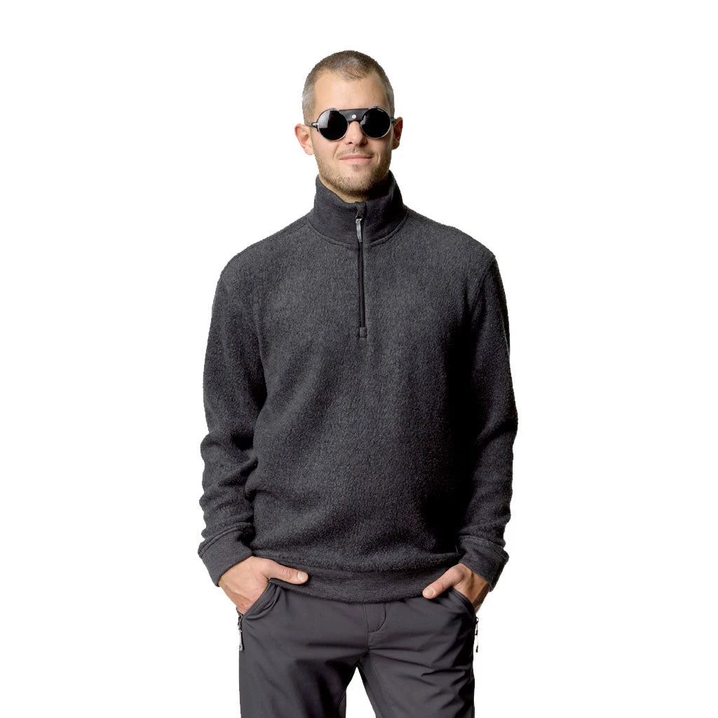 Fleecegenseren er laget i en klassisk passform med en mykt og lett rufsete ytterlag, som gir et klassisk og tidløst inntrykk, og brytes opp med et smidigere stoff rundt kragen, i ermene og i nedekanten. En myk linning føles ekstra behagelig huden, en fordel om du for eksempel bruker en kortermet T-skjorte under. Kragen har en half zip YKK glidelås med stormklaff, som kan trekkes ned for å lufte ut eller være igjen avhengig av temperatur.