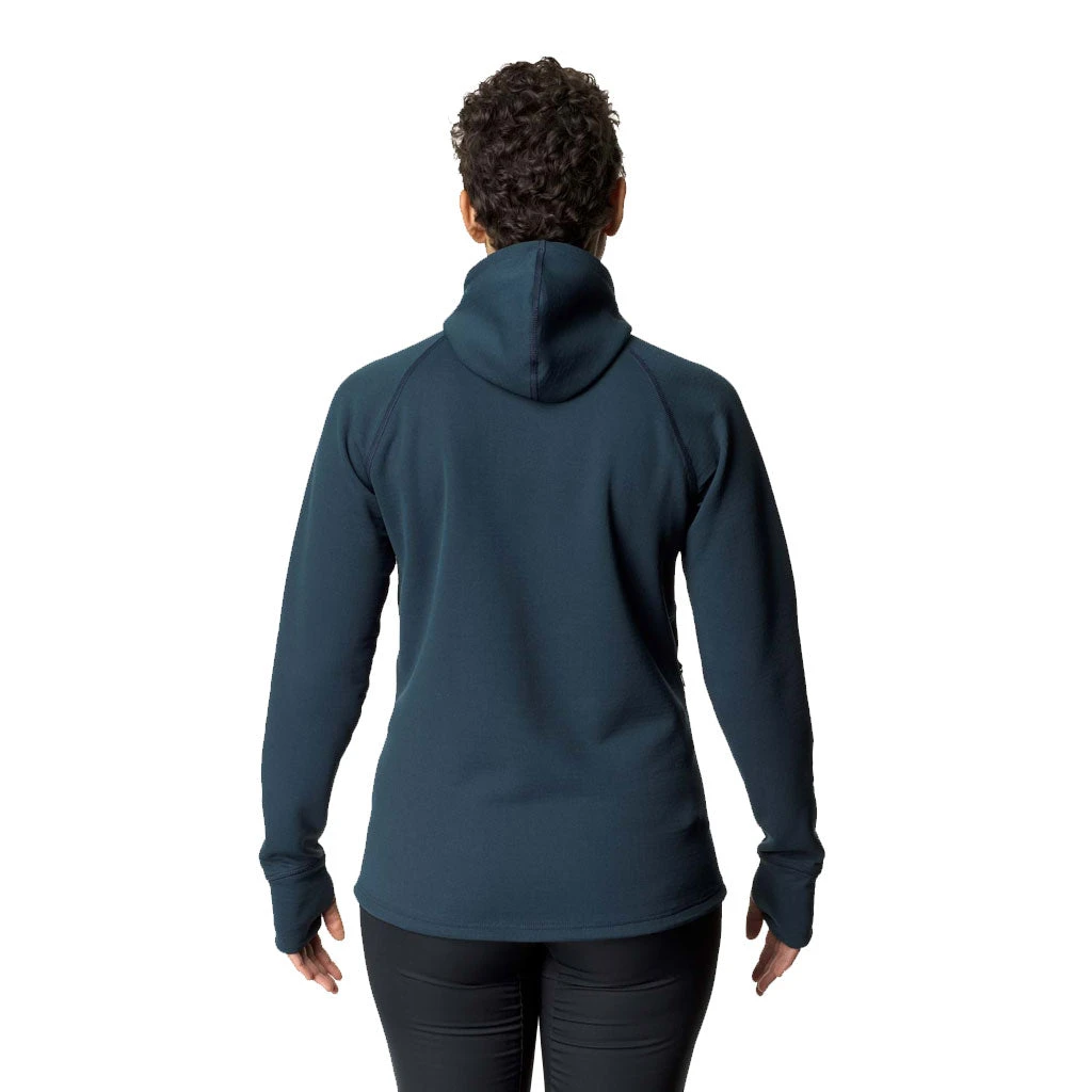 Stoffet er laget i en blanding av resirkulert polyesterfleece og elastrelle-polyester, og har gode fukttransporterende og hurtigtørkende egenskaper. Denne hettegenseren fungerer godt som teknisk mellomlag under en ytterjakke – for eksempel under en skalljakke i skibakken på kalde dager, eller like gjerne som en hverdagshoody hjemme du raskt kan komme til å bli glad i!