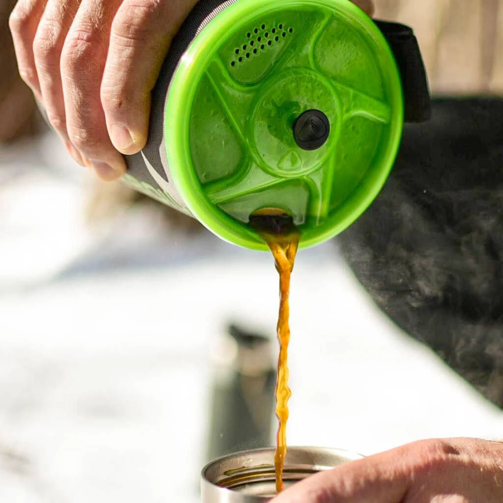 Dette er en kaffepresse laget i metall og silikon som er kompatibel med Jetboil Zip og Flash. Kan brukes som en french press til kaffe eller til å trekke grønnsaker til middagen!.