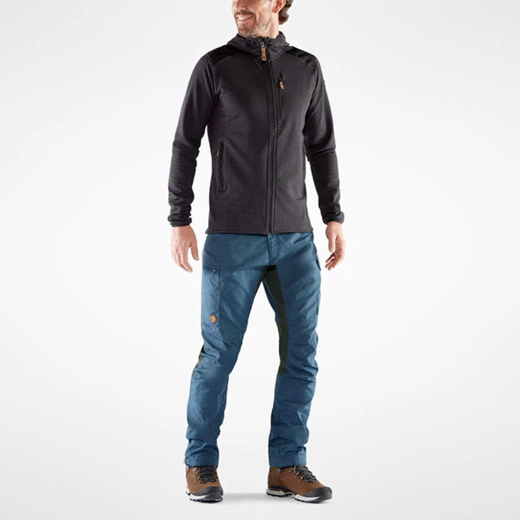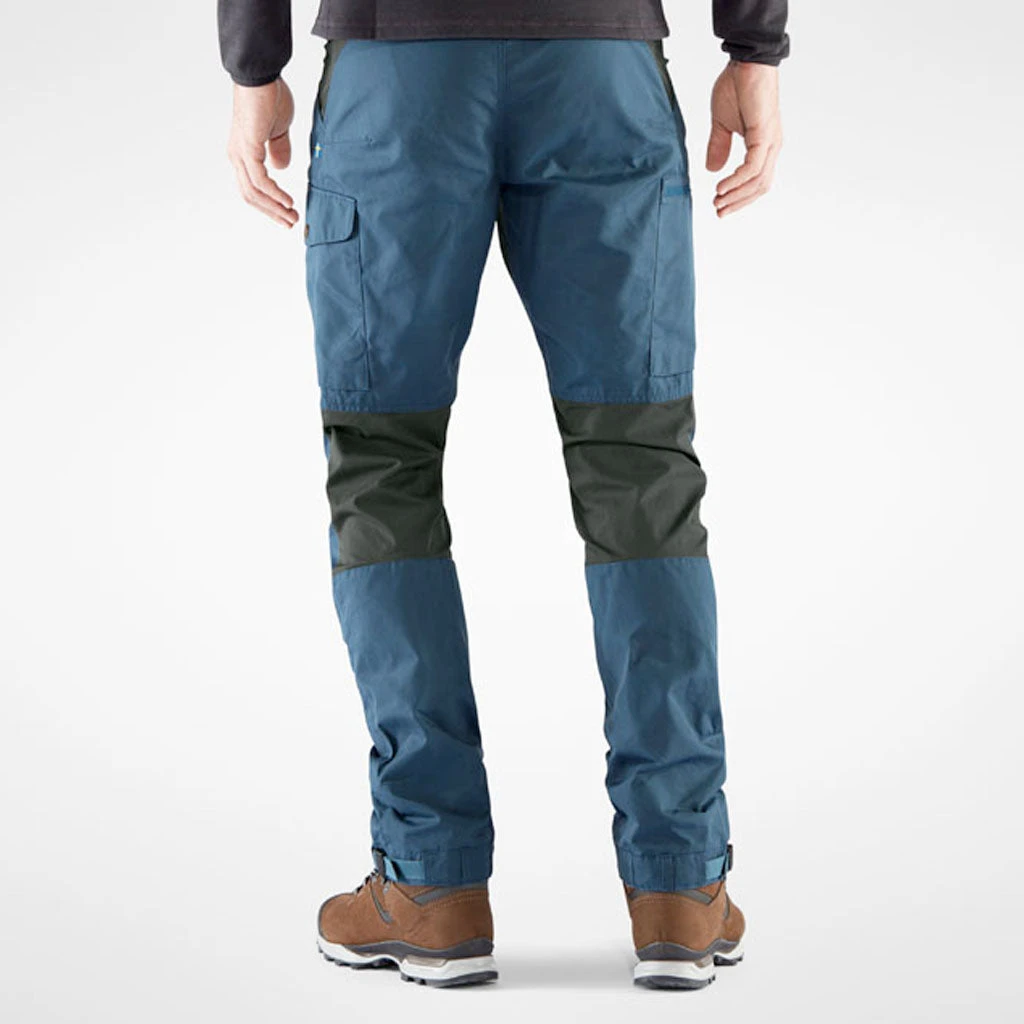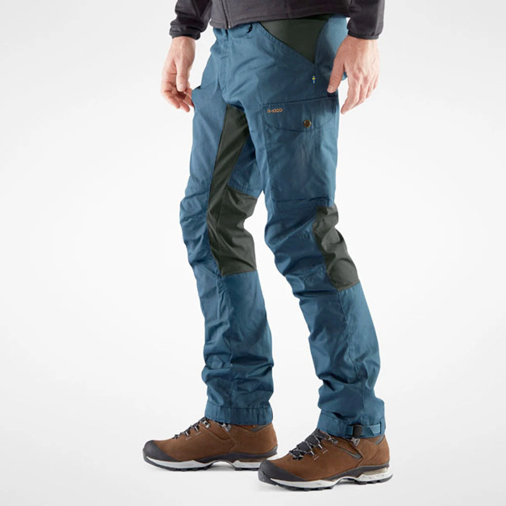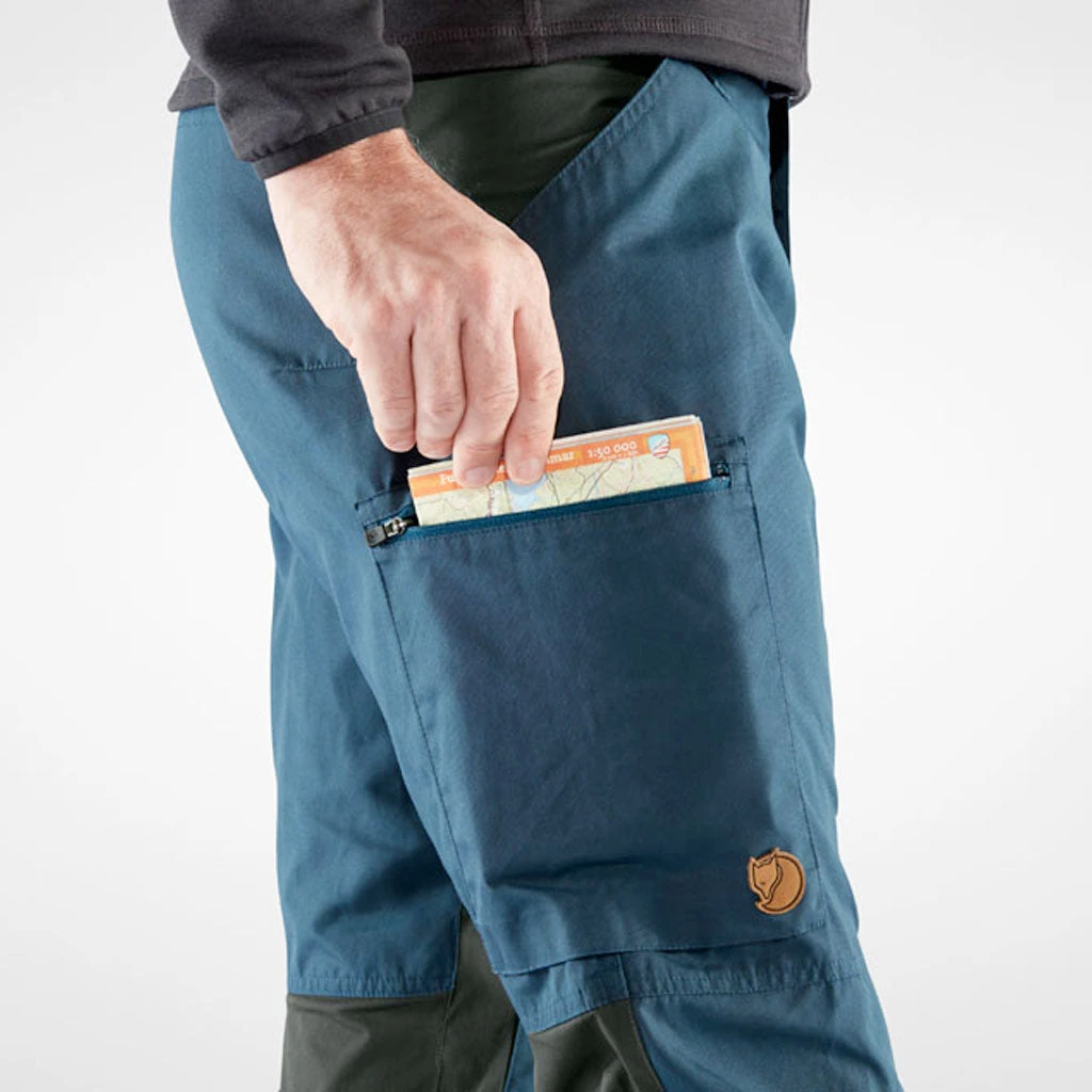 Kaipak er en turbukse som er laget for å fungere like godt på tur i skogen som til hverdager. Passformen er en normal mid-rise med en litt lengere innersøm, og er forsterket med stretchpaneler i ryggåket, skrittet og bakpå knærne for maksimal bevegelsesfrihet. Hovedstoffet er laget i Fjellrevens slitesterke G-1000 Eco, som mostår vind og lette regnbyger og kan impregneres med Greenland Wax for ekstra beskyttelse. Stroppjusteringer og skohemper i bena og romslige benlommer er detaljer som gjør dette til en komplett turbukse du alltid vil ha lyst til å ta med på neste tur.
