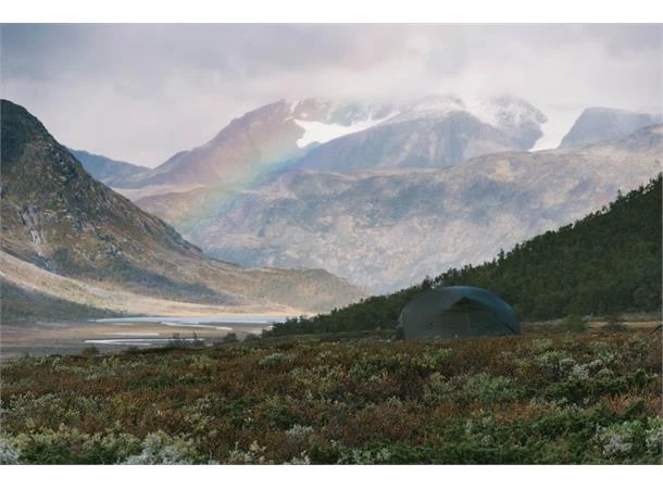 Den selvstående geometrien sørger for et stramt telt som ikke blafrer og bråker i vinden. Teltet kan settes opp med kun innertelt slik at du kan ligge i teltet å se opp på stjernehimmelen eller midnattssola.