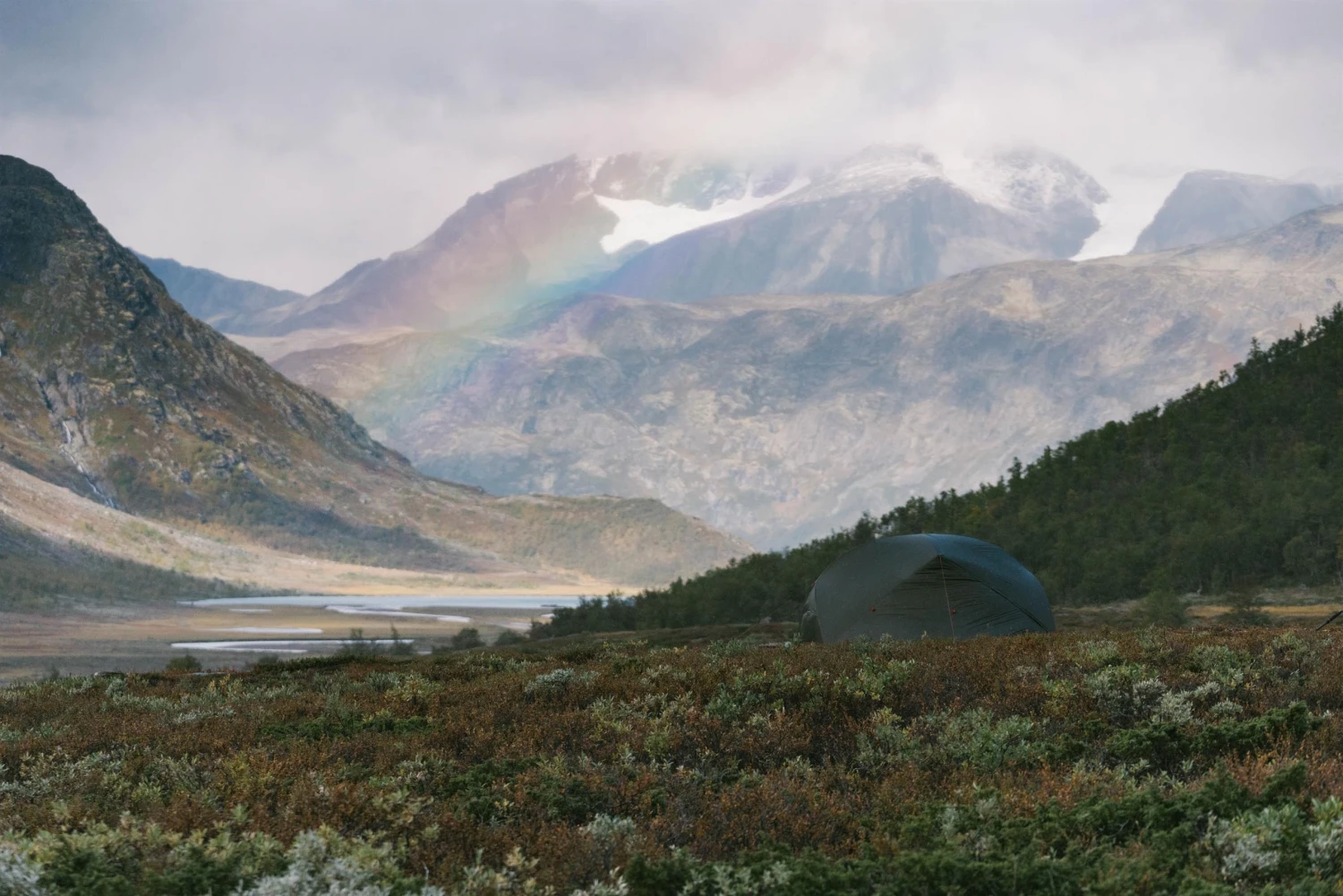 Den selvstående geometrien sørger for et stramt telt som ikke blafrer og bråker i vinden. Teltet kan settes opp med kun innertelt slik at du kan ligge i teltet å se opp på stjernehimmelen eller midnattssola.