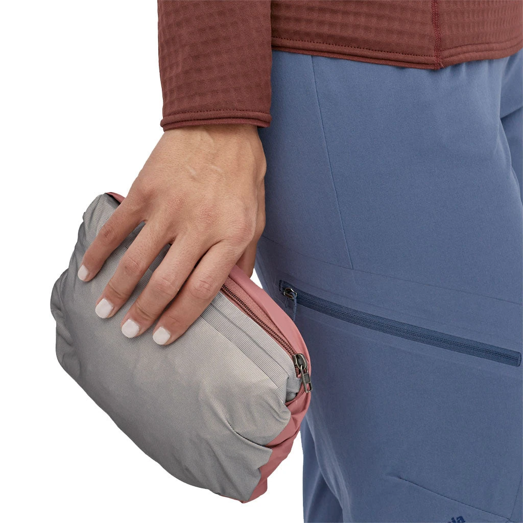 Regnjakken er laget med Patagonias H2No® Performance Standard teknologi, som gir materialet gode tekniske egenskaper i kraft av et vanntett, lett og pustenede stoff som i tillegg er komprimmerbart. Når du er ferdig med å bruke jakken, er det bare å brette og stappe den inn i den ene håndlommen og dra igjen glidelåsen. Putt den i sekken så har du den klar til bruk neste gang skyene truer.