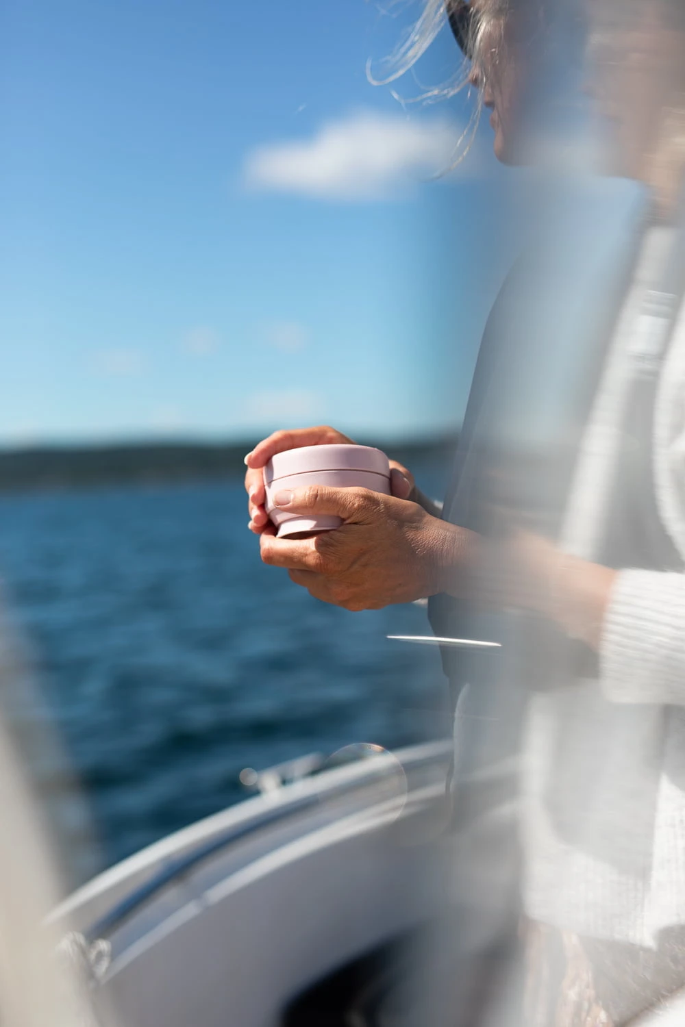 Gjenbrukskopp i ‘trekkspilldesign’ fra Stojo. Klappes enkelt sammen til en liten, vanntett pakke du kan putte i veska/jakkelomma når du er ferdig med kaffen. Dette er gjenbrukskoppen du faktisk bruker fordi den er så enkel å ha med seg. Koppen finnes både med annen farge på magebeltet eller i en variant hvor hele koppen har samme farge. Størrelsen og koppen er ellers lik.