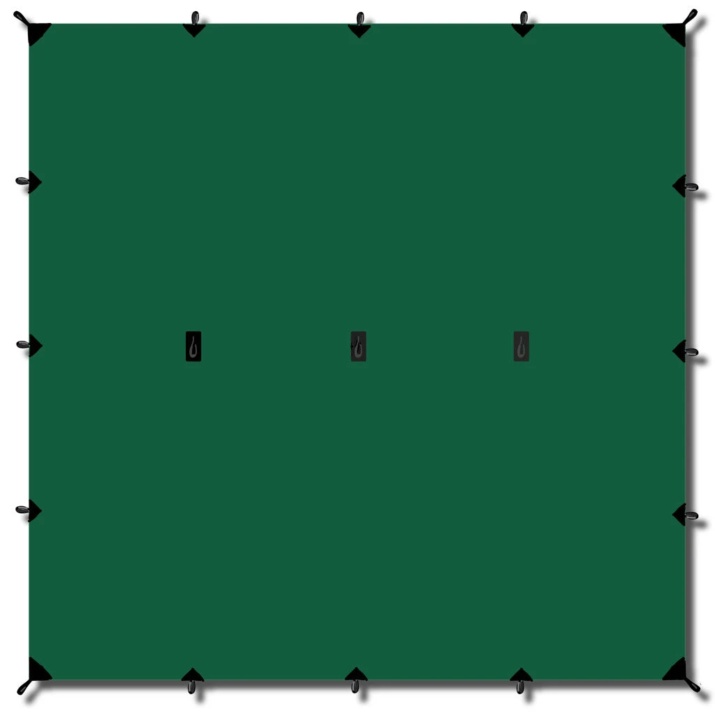 EGENSKAPER Type: Tarp/Gapahuk (3×3 meter) Består av: 1 x Tarp/Gapahuk (3×3 meter), 4 x Tau m/strammere (3 meter), 4 x Teltplugger (18 cm) og Pakkepose m/ snørestrammer. Bruk: Tur Spesielle egenskaper: Vanntett, vindavvisende Merknader: Kan settes opp som Tarp eller som Gapahuk MATERIALER Materiale: 190T Polyester med PU-impregnering. Tapede sømmer. Materiale hardvare: Aluminium MÅL OG VEKT Farge: Grønn Mål (Diameter, Høyde): 3×3 meter Vekt: 785 g (kun tarp/gapahuk) / 950 g (hele pakken) -