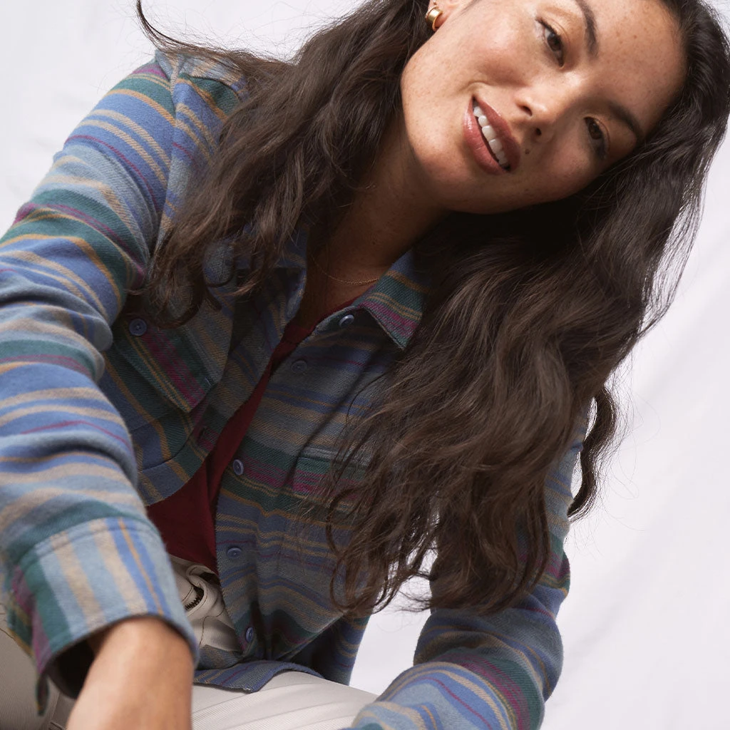EGENSKAPER Varenavn: United By Blue Responsible Flannel – Pacific-Stripe Type: Flanellskjorte for dame Bruk: Høst, hele året Spesielle egenskaper: Myk, holdbar Merknader: MATERIALER Materiale: 60% Bomull / 40% Resirkulert polyester Motiv/Farge: Pacific-Stripe MÅL OG VEKT Passform: Normal Mål (Diameter, Høyde): Se størrelsesguide! Vekt: 400 g (M) STØRRELSESGUIDE